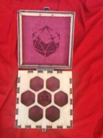 cofanetto per un set di dadi, disegno laser e tessuto interno.