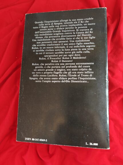 VOLUME IN BUONE CONDIZIONI Quando l’Inquisizione allungò la sua mano crudele sulla terra di Spagna, tenendo sia il Re che tutto il Regno nella sua stretta implacabile, un nuovo orrore sorse a sfidare persino la potenza dell ’inesorabile Grande Inquisitore. Si trattava di una maledizione scagliata contro la casa del Re Alonzo, che proveniva direttamente dal Diavolo. Una maledizione che avrebbe fatto si che le sue figlie non potessero mai sposarsi. Una maledizione che avrebbe tra.sformato il suo unico figlio maschio, Rolon, in un essere infernale, il cui indicibile segreto si sarebbe rivelato sotto la luna piena in una terra in cui il terrore sarebbe sorto già nella culla, spargendosi poi per ogni dove. Rolon, il Prescelto! Rolon il Maledetto! Rolon il Dannato! Rolon, che peraltro era una persona estremamente gentile, e che portava nel profondo del cuore un amore grande e tragico, era stato colpito da un vero e proprio flagello che gli era stato inflitto dallo stesso Lucifero. Rolon; l’Erede al Trono di Spagna, che aveva osato sfidare perfino l’Inquisizione, sotto l’empio aspetto del Dio Dimenticato..
