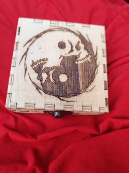 Cofanetto portadadi disegno Teschi (Yin e Yang) prodotto artigianale in legno