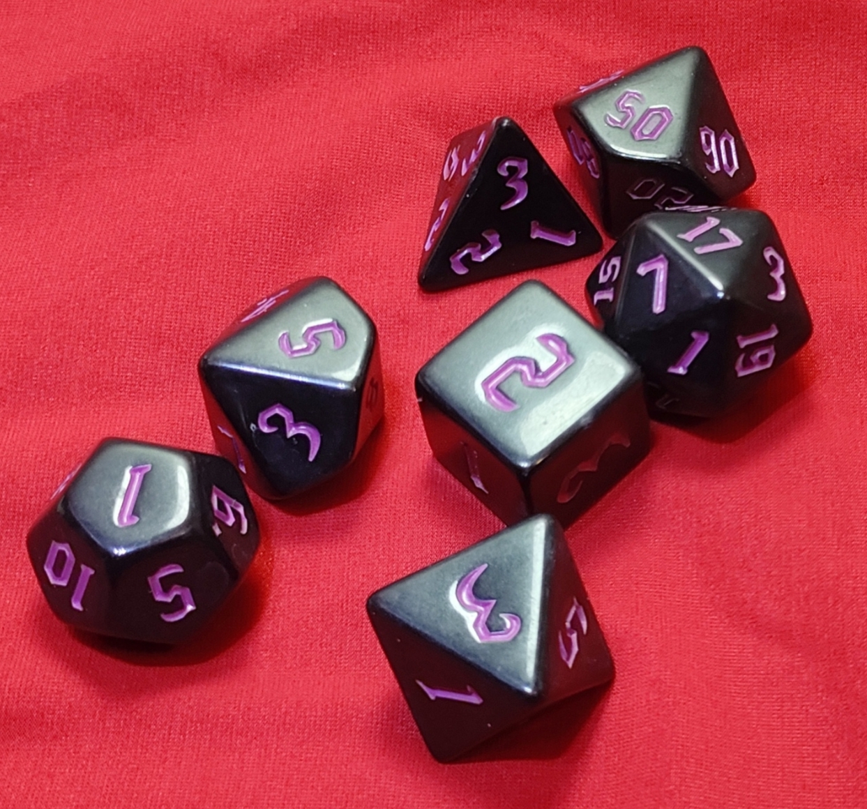 Set Dadi colore Nero numeri rossi uncinati 7 dadi (4-6-8-10-%-12-20 facce) dimensioni standard €4.00